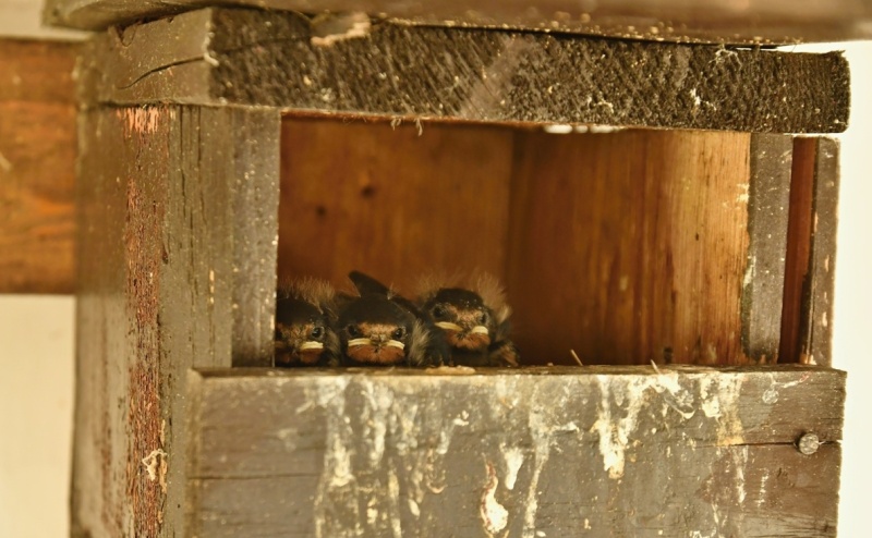 Řekl jsem mu, že je to velmi zajímavé a je velká škoda, že hnízdění vlaštovek v budce nenafotil. A tak mi letos poslal fotky mláďat vlaštovek, které hnízdí v ptačí budce pro rehky a následující příběh: