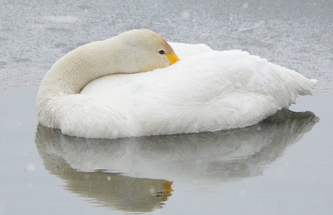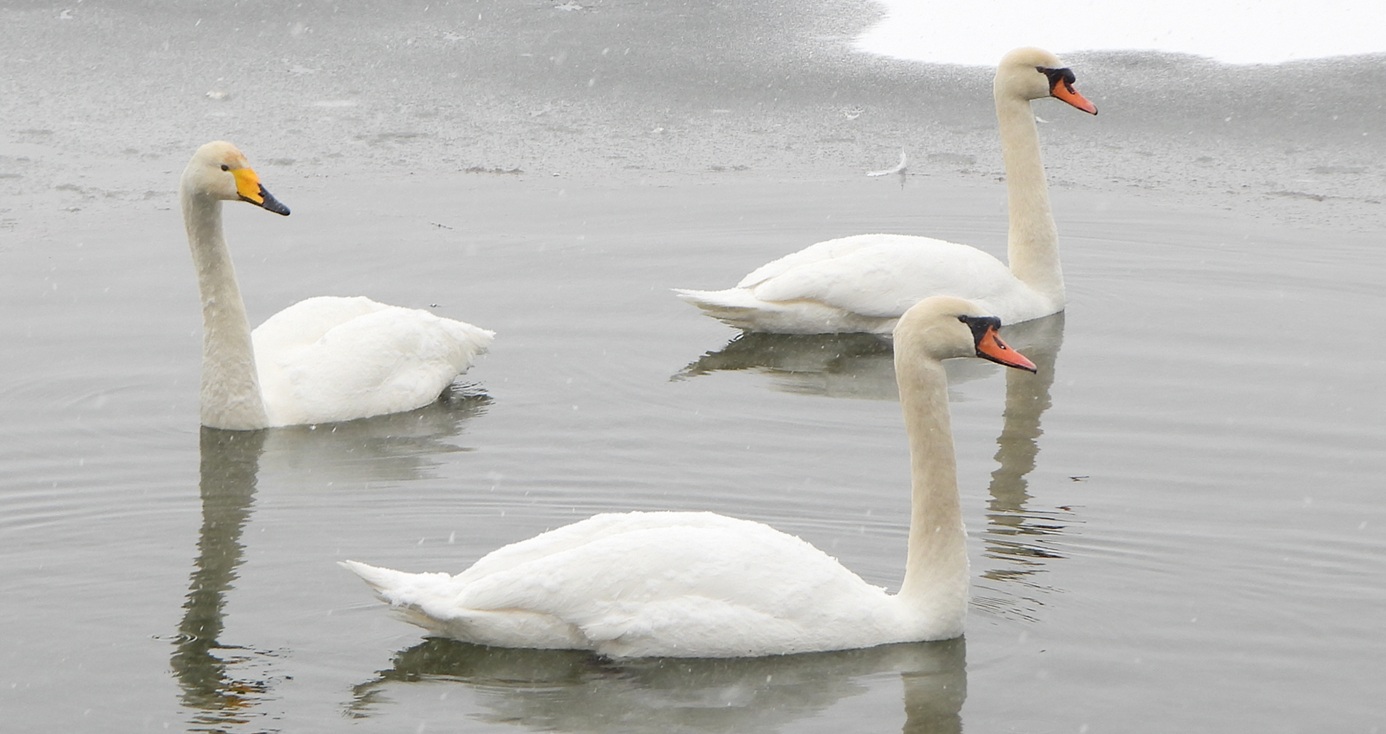 Na rozdíl od teplomilného kolpíka bílého je labuť zpěvná ze severu Evropy dobře připravena na naši zimu. Každopádně se dá považovat setkání těchto dvou druhů v únoru na jednom rybníků za neskutečnou raritu.