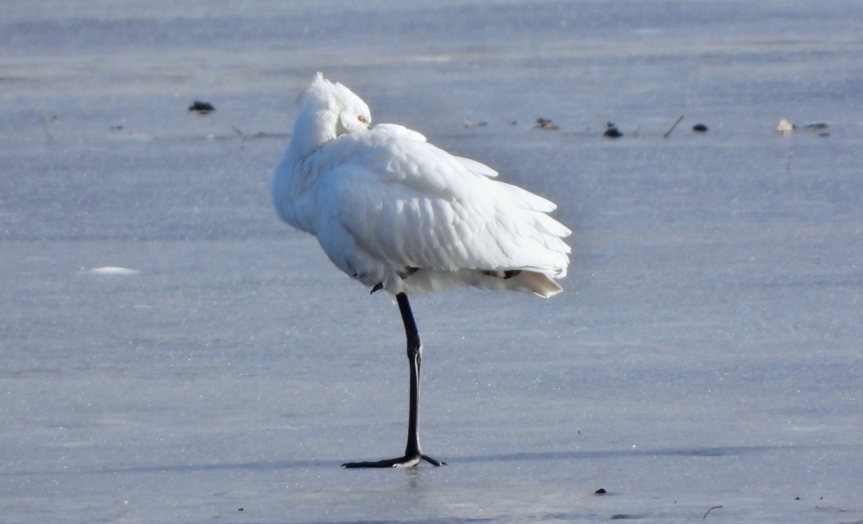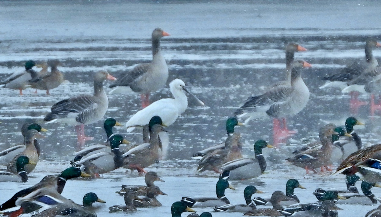 Na rozdíl od teplomilného kolpíka bílého je labuť zpěvná ze severu Evropy dobře připravena na naši zimu. Každopádně se dá považovat setkání těchto dvou druhů v únoru na jednom rybníků za neskutečnou raritu.